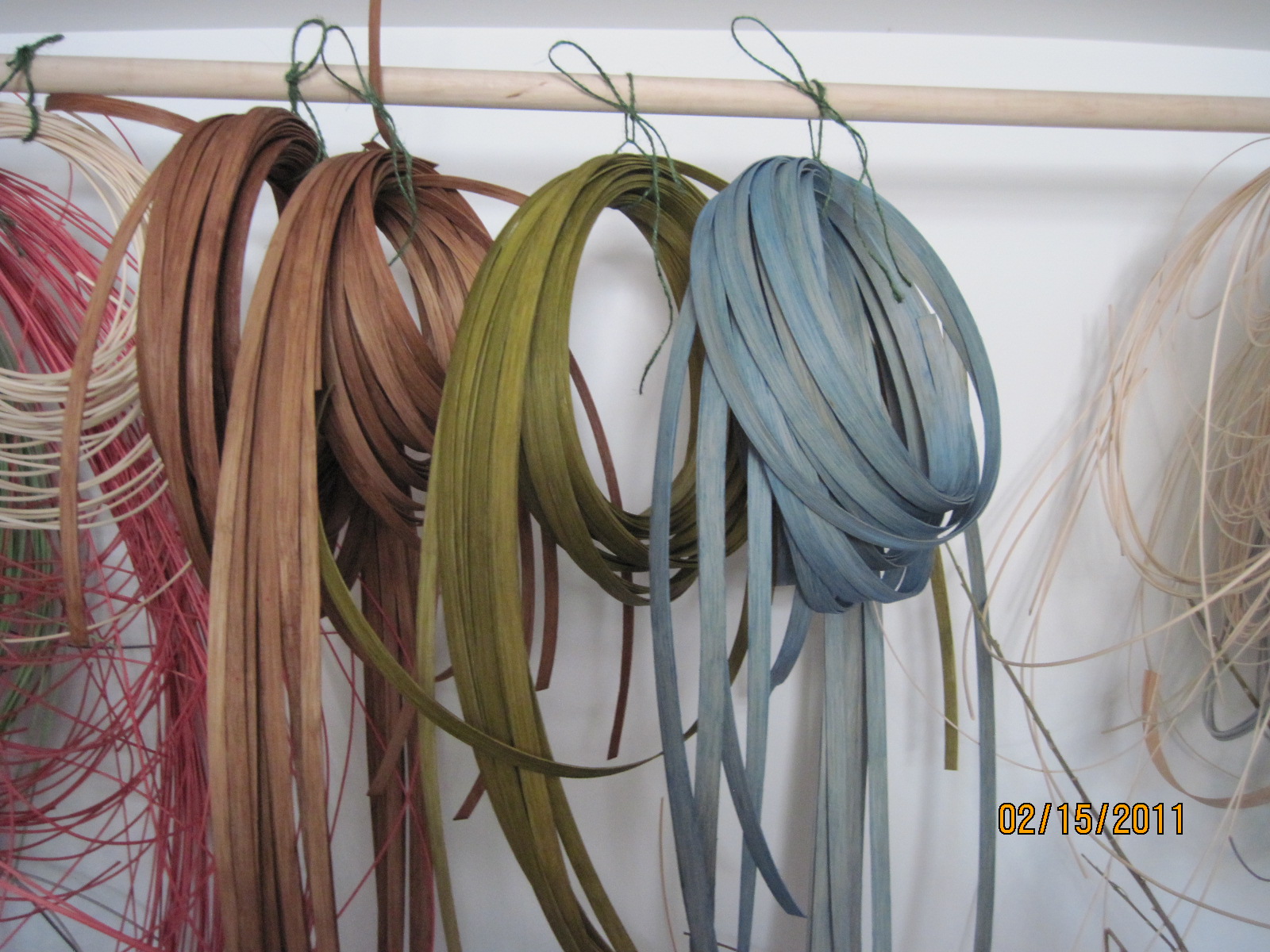After donning my winter parka, my touque, and my gloves to take out the garbage etc. this morning, I decided today was a good day to dye the remainder of the flat cane I had in stock. To dye cane, I light my BBQ on the deck outside, and put on it a large stainless steel bowl with hot water, dye and salt. I then dip the cane through the mixture, and hang it to dry.
